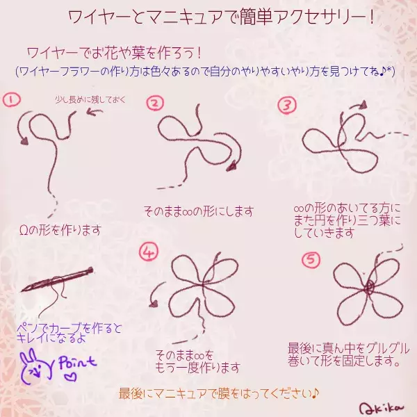 マニキュアで作るお花 マニキュアフラワー がカワイイ 作り方と活用例 Handmade Wire Jewelry Nail Polish Jewelry Wire Work Jewelry